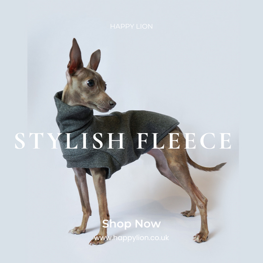 Cosy zebra print fleece onesie for Italian Greyhounds & Whippets. Soft, warm, and easy to wear — perfect for chilly days or stylish lounging.
