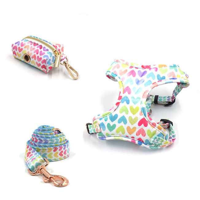 Dog Harness and Leash Set Mesh Padded Soft Pet Harness for Small Dogs Blueberry Pattern Luxury Custom Name Dog Collar Adjustable