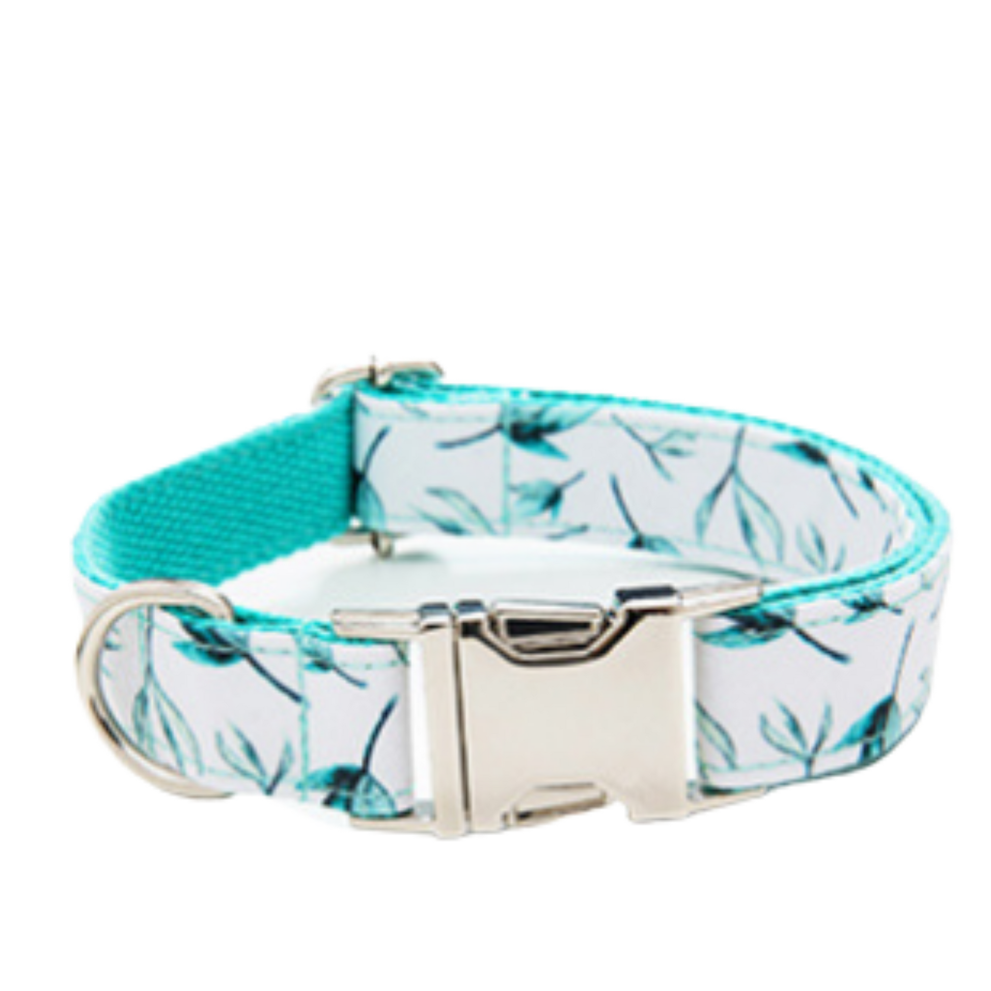 1. Dog Collar and Leash Set with Bow Tie Pretty Tropical Leaves Metal Buckle Big and Small Dog&Cat Collar Pet Accessories