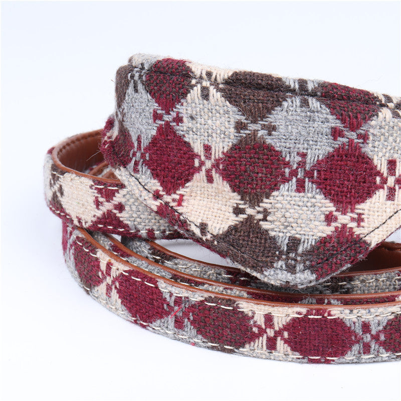 Introducing our stylish and functional Tartan Design Adjustable Collar with Faux Leather Straps and Gold Hardware for small and medium dogs and pups! Made with high-quality tartan fabric, this collar is designed to make your furry friend stand out in style during walks or outings. The adjustable strap ensures a perfect fit for your pet, providing both comfort and security. The faux leather straps and gold hardware add a touch of sophistication to this classic tartan design.