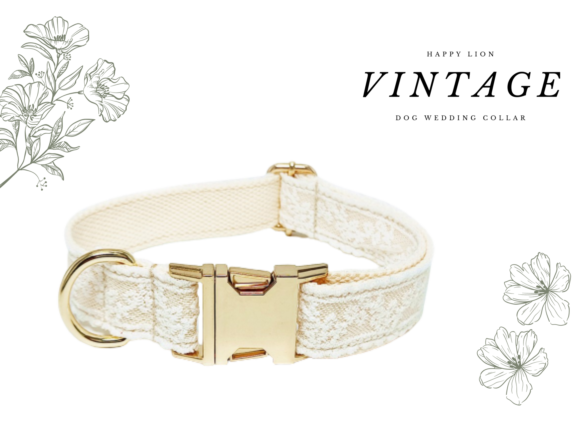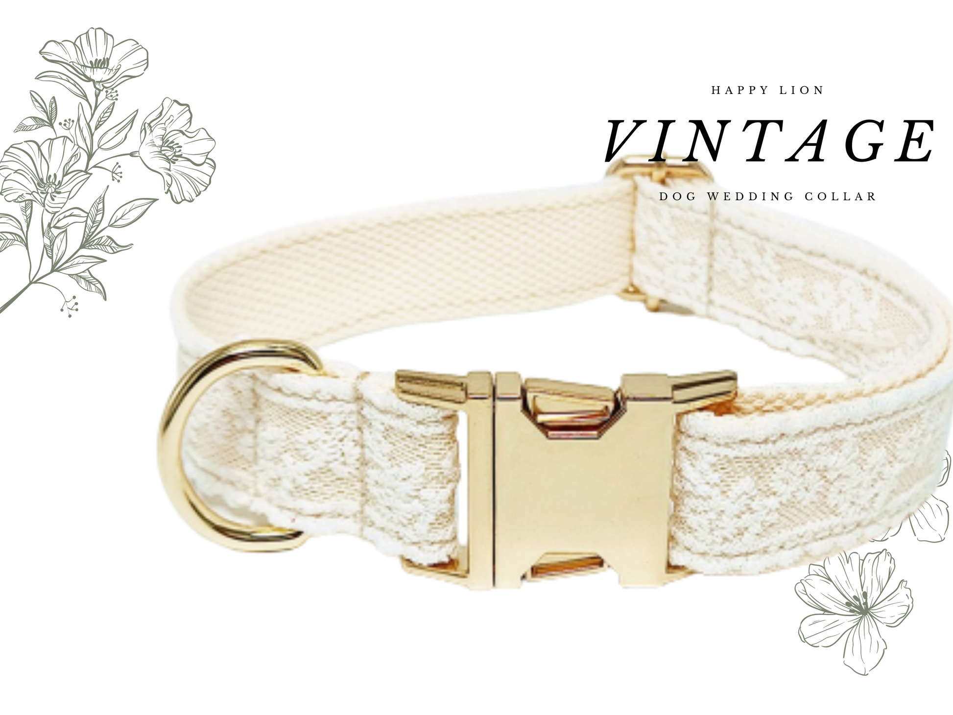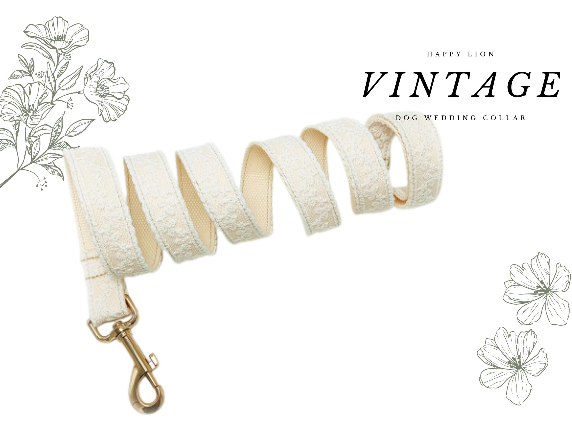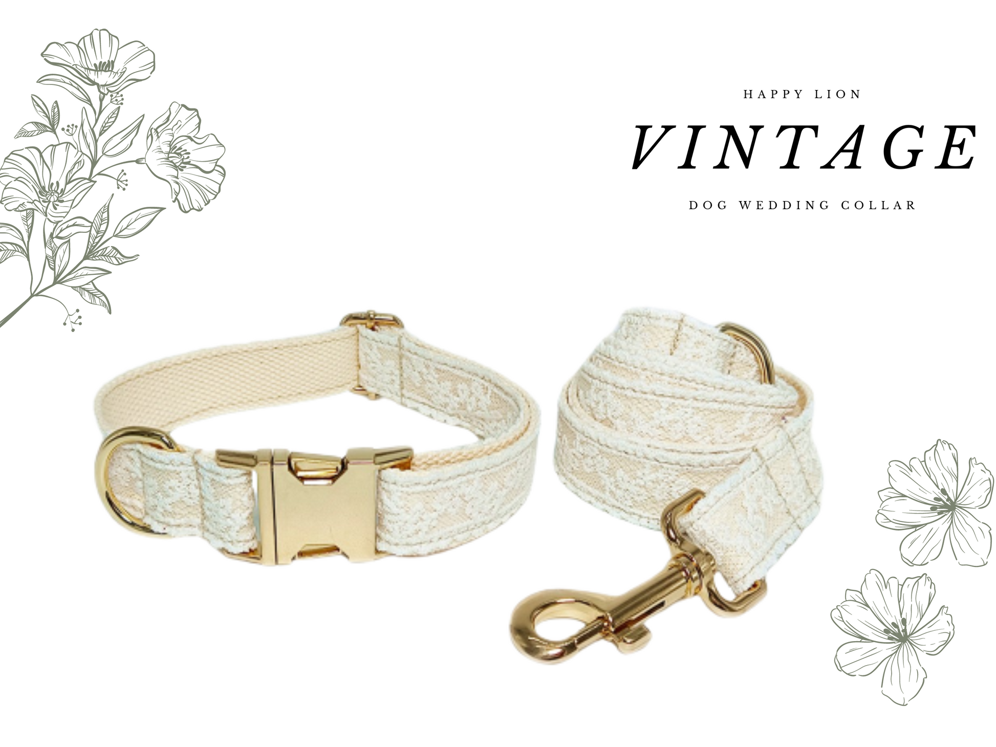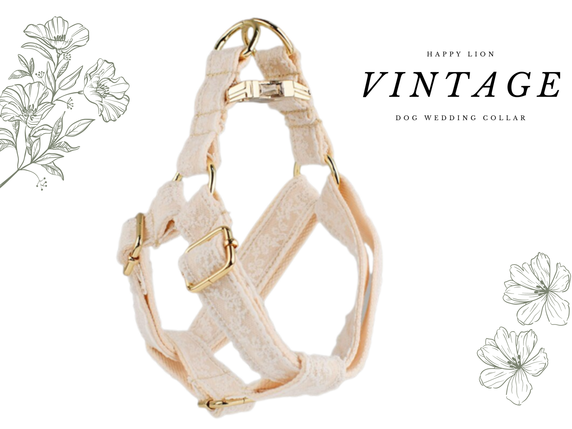 Vintage White Lace Dog Wedding Collar, Harness Leash Set With Gold detail